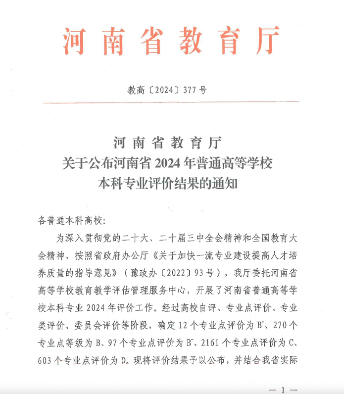 根据河南省教育厅《关于公布河南省2024年普通高等学校本科专业评价结果的通知》(豫教高[2024]277号),yl23411永利集团官网广播电视编导专业获得B-等次,排名在全省21所开设同专业的本科高校中名列前矛,延续了今年6月发布的《中国高校2024软科专业排名》全国第46(全部254所同专业高校前18%)的成绩,稳居国内第一梯队。